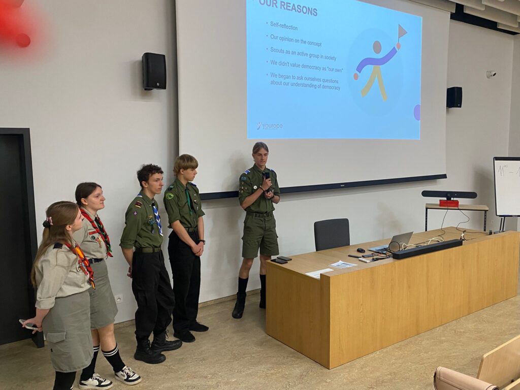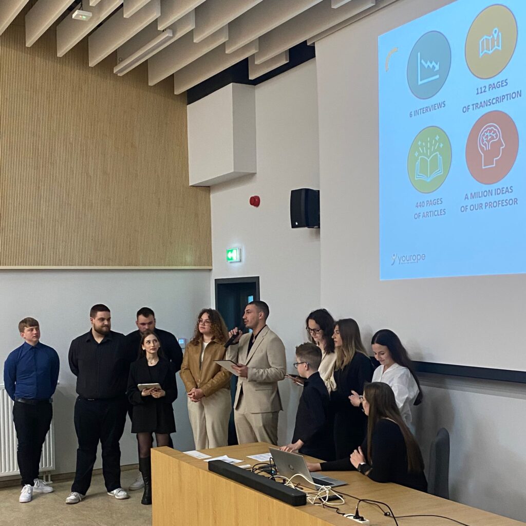 For most of the student presenters, this marked their debut public speaking experience. Despite initial nerves from both students and faculty members, the young researchers exceeded all expectations. Through oral presentations and poster sessions, they shared the outcomes of their Community-Led Action Research (CLRA) conducted as part of the YOUROPE project “Visionary roadmaps: Crafting an Inclusive and Participatory European Democracy with Youth and Communities.”